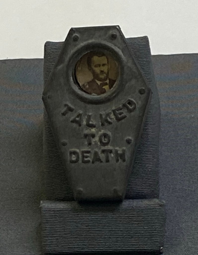 Throughout our time there it felt like a truly curated presentation, history lesson, walking tour, and interactive experience. Seeing and learning ways to curate and tell a historic story without just looking and reading an exhibition panel was a different approach than what we have interacted with this week. Boyd’s presentation of Talk of the Tavern was an innovative approach to providing a hands-on history lesson that would be important to experience for someone of any age and I’m positive that even adults learn or perform something they have never done before from holding a black ball to vote, using a quill pen or even writing in their own vote. I never did. The memorial parts from the trip were seeing the physical items in the collection as shown to us by Carli DeFillo the Collections Manager. The voting trinkets of the little barrel, Lincoln’s pre-beard banner, and the little coffin with Grant in it were something the newer audience may never see and showed the variety of time periods that Historic Richmond Town attempts to show. Having a memorable and welcoming experience to museums enthusiast and museum professionals showed the care and thought that Historic Richmond Town and its employees put into sharing a hands-on historical approach.